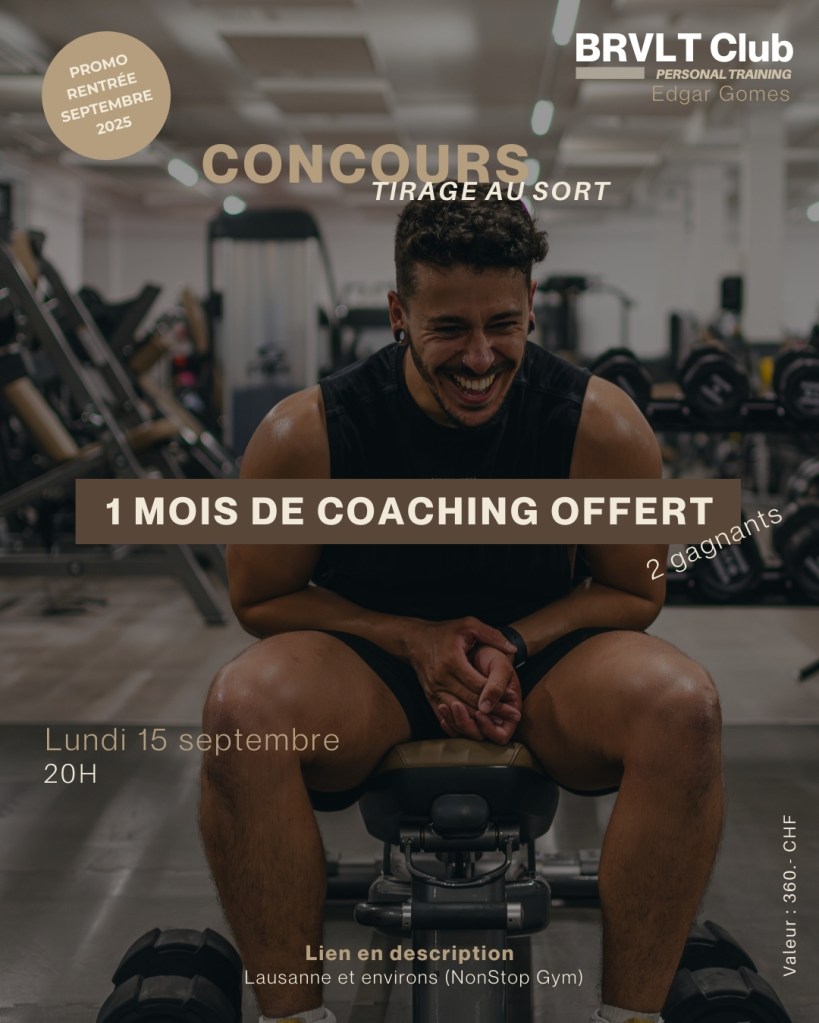 2 gagnants recevront 1 mois de coaching personnalisé, offert et sans engagement.